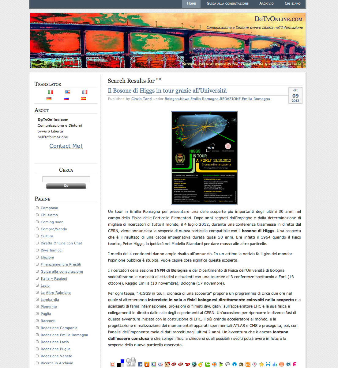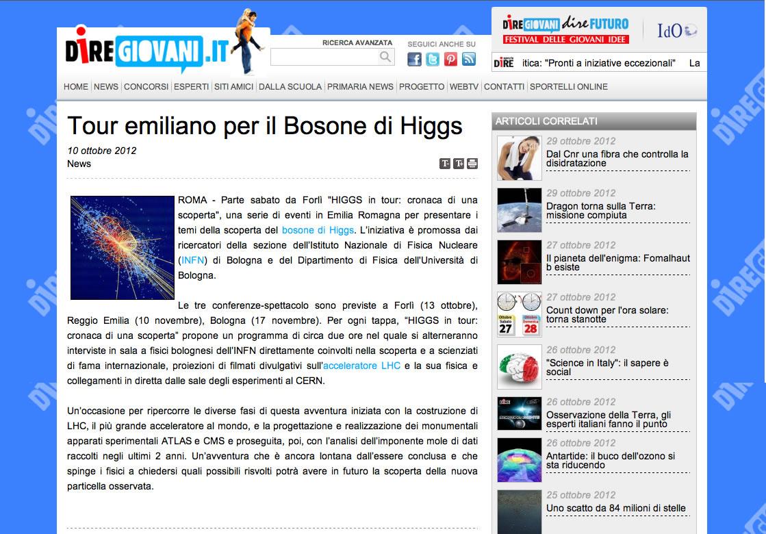 TOUR EMILIANO PER IL BOSONE DI HIGGS DIREGIOVANI.it 10/10/2012