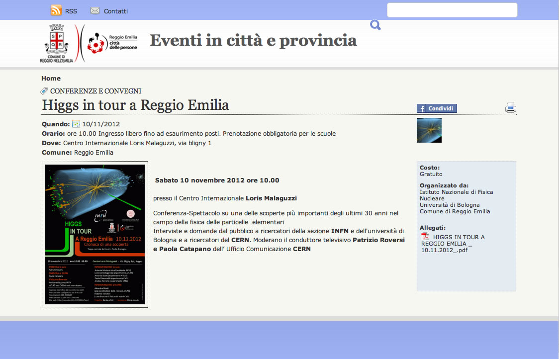 HIGGS IN TOUR A REGGIO EMILIA COMUNE Reggio Emilia 08/11/2012