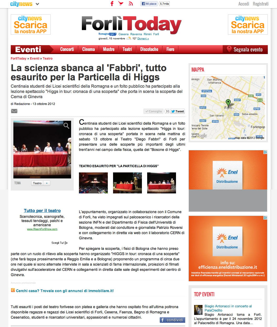 LA SCIENZA SBANCA AL "FABBRI", TUTTO ESAURITO PER LA PARTICELLA DI HIGGS FORLI'Today 13/10/2012