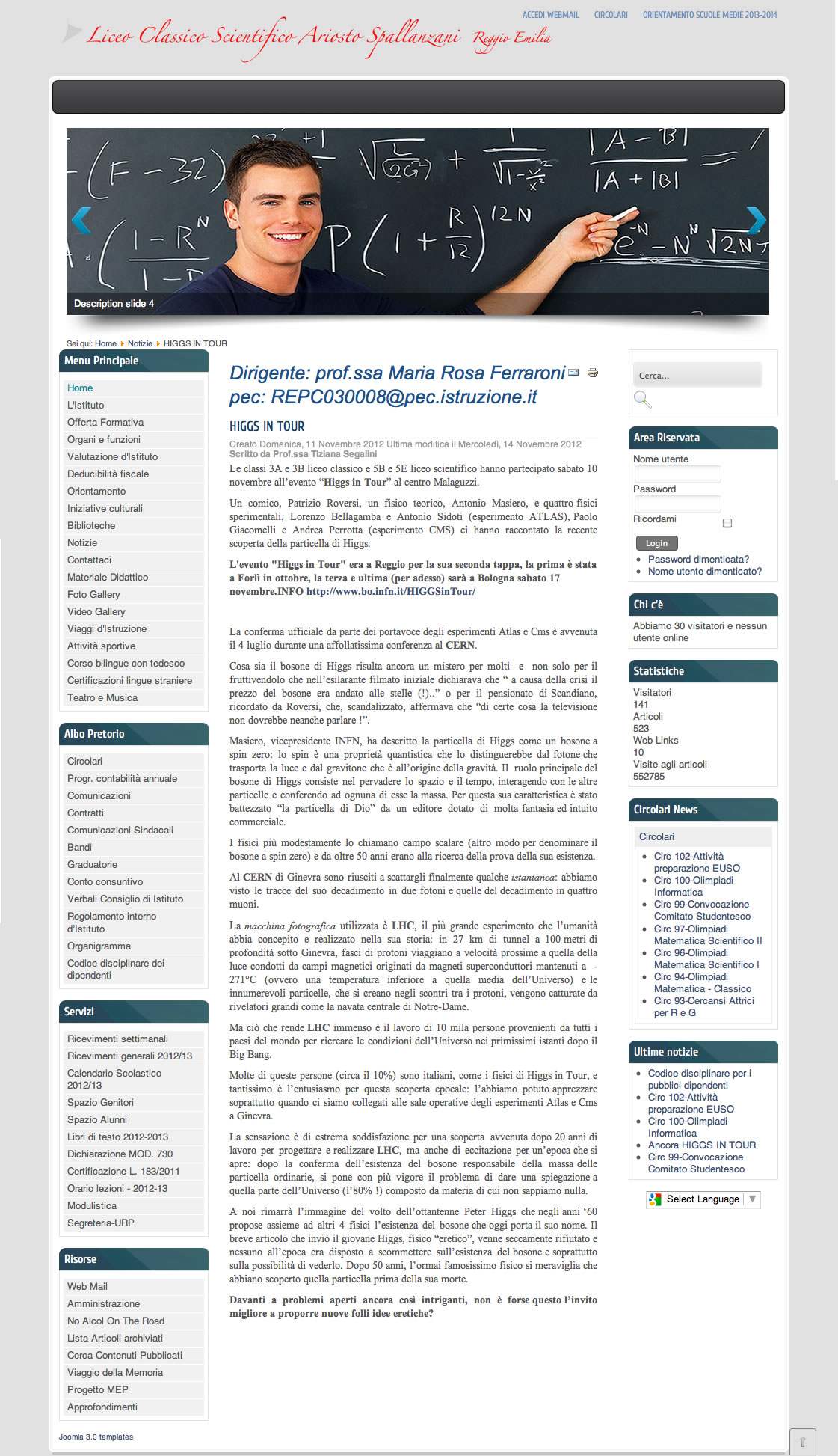 HIGGS IN TOUR: IL RESOCONTO DI UNA SCUOLA Liceo Ariosto Spallanzani RE 11/11/2012