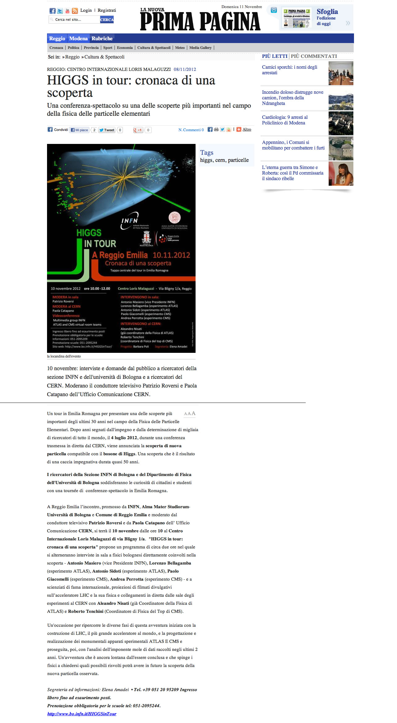 HIGGS IN TOUR La Repubblica Bologna 10/11/2012