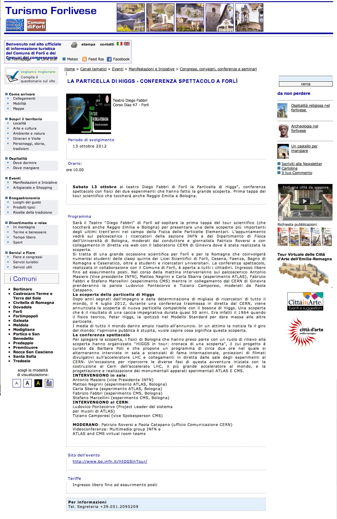 LA PARTICELLA DI HIGGS - CONFERENZA SPETTACOLO A FORLI' Turismo Forlivese 12/10/2012