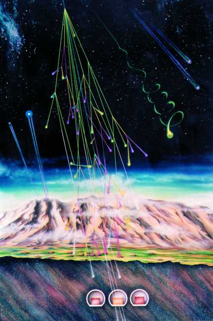 From space, a flux of cosmic ray particles reaches our atmosphere; here the particles multiply in a chain of successive interactions and decays, and give origin to a cosmic rain which hits each of us at a rate of about 4000 charged particles per minute. Primary cosmic rays consist mainly of protons, helium and iron nuclei, photons and neutrinos. They come from the sun, from supernovae and other not well identified cosmic sources inside our galaxy, and also from outside our galaxy. The study of cosmic rays is important in itself in order to study this natural phenomenon; it was also the key to explore the world of subnuclear physics in the 30s and 40s, when accelerators could yield particles which could barely reach the surface of atomic nuclei. Today cosmic rays allow the investigation of the cosmos via high energy particles, the study of fundamental physics at energies not yet achievable in our laboratories, and to obtain indications on the first phases of the evolution of our universe. The Gran Sasso Laboratory, in central Italy, is a large laboratory dedicated to the study of this field. 1) The interaction of cosmic rays in the atmosphere and in terrestrial rocks in a presentation which also shows the three experimental halls of the Gran Sasso National Laboratory. |